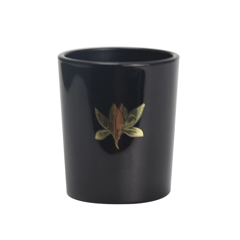 Utsiden av vår stearinlyskrukke har en slående svart matt finish, laget gjennom en omhyggelig spraybeleggprosess. Denne luksuriøse finishen gir ikke bare dybde og tekstur til krukken, men komplementerer også et bredt spekter av interiørstiler, fra moderne minimalisme til klassisk eleganse. Den svarte, matte overflaten utstråler en følelse av diskré luksus, noe som gjør den til et allsidig tillegg til ethvert hjemmeinnrednings-ensemble. Ved å legge til et snev av overdådighet til vår sorte, matte stearinlyskrukke, er en fantastisk gylden blomst som pryder utsiden. Denne intrikate utformede blomsten fungerer som et symbol på skjønnhet, eleganse og raffinement, og løfter den estetiske appellen til lyskrukken til nye høyder. Den gylne fargetonen kontrasterer vakkert mot det svarte, matte bakteppet, og skaper et visuelt fokuspunkt som vekker oppmerksomhet og beundring.